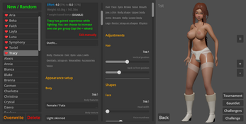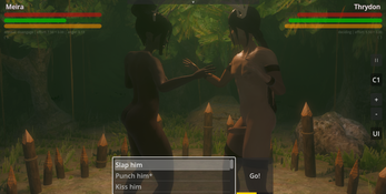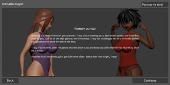 A battlefuck match consists of a series of actions where the opponents invest "effort". The one investing more wins the action and chooses the next. Win the game by reducing your opponent's willpower and making them orgasm.